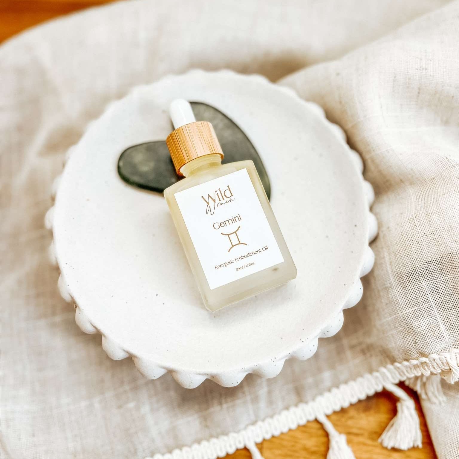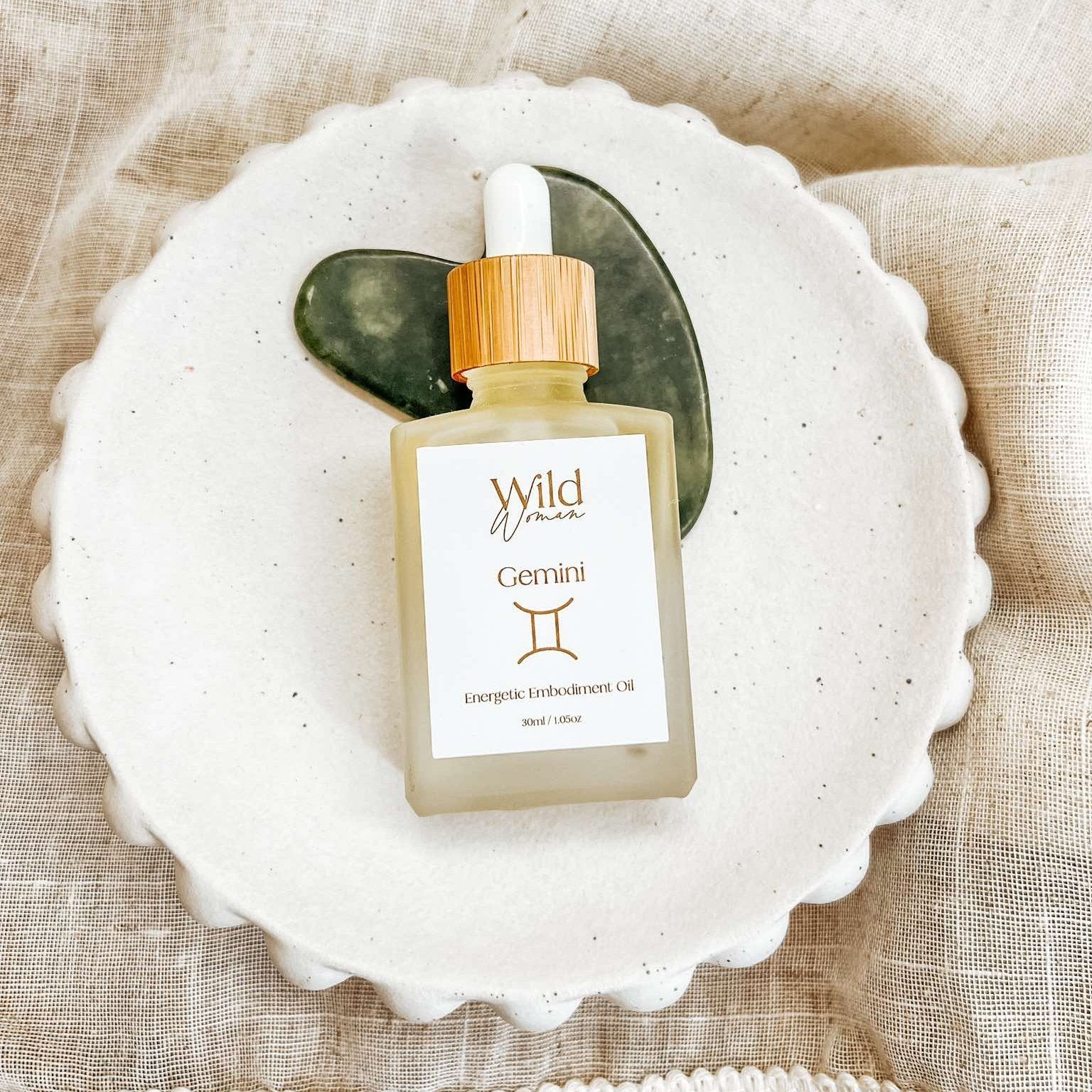 Gemini is a blend of Sweet Almond Oil, Jojoba Oil, Apricot Kernel Oil, and Neroli, Fir Needle and Myrrh Essential Oils.